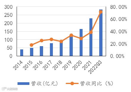 2014-2021年,药明康德营收、扣非归母净利润的复合增速分别为23.83%和44.57%;2022Q3,药明康德营收、扣非归母净利润分别同比增长71.87%和100.64%。从药明康德的业务成长能力来看,景气度依旧。