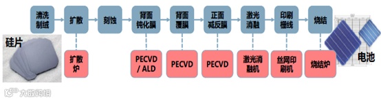 图表:PERC电池片生产流程对应设备