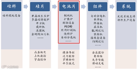 图表:电池片环节所需设备及设备领域代表公司