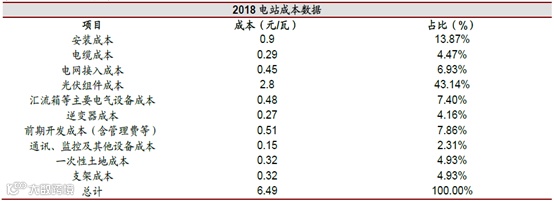 目前组件成本约占光伏电站成本的40%-50%。太阳能电池组件是具有外部封装及内部连接,能够单独提供直流电输出的最小不可分割的代养能电池组合装置,即多个单体太阳能电池互联封装后成为组件。按照电池片材料,太阳能电池组件可以分为单晶组件、多晶组件、薄膜组件等。
