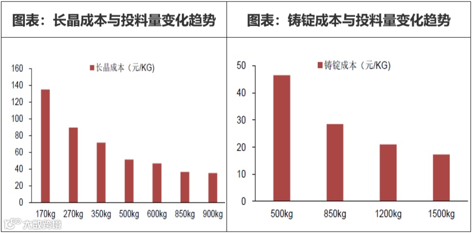 图表:出片量提升对单多晶成本摊销的变化