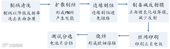 图表:传统铝背场太阳能电池片工艺流程