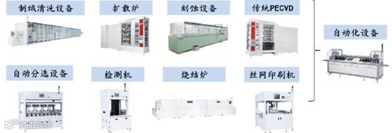 图表:传统铝背场(BSF)电池片生产流程对应设备