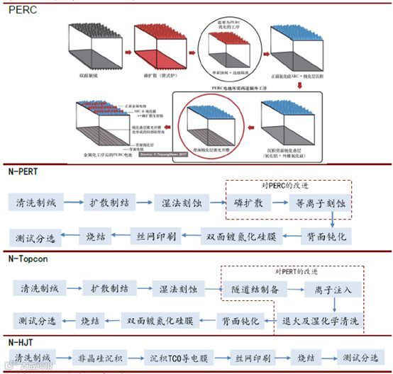 图表:不同电池工艺流程