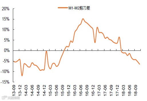 3、M1-M2 剪刀差负向再扩大,经济整体需求较弱