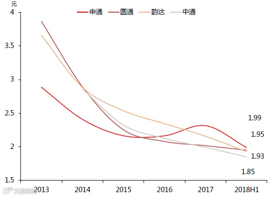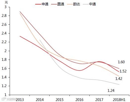 注:由于通达系业务模式、直营业务比例不同,其单票收入、成本原始数据不存在可比性,以上单票收入、成本数据均为经过标准化处理后的数据。