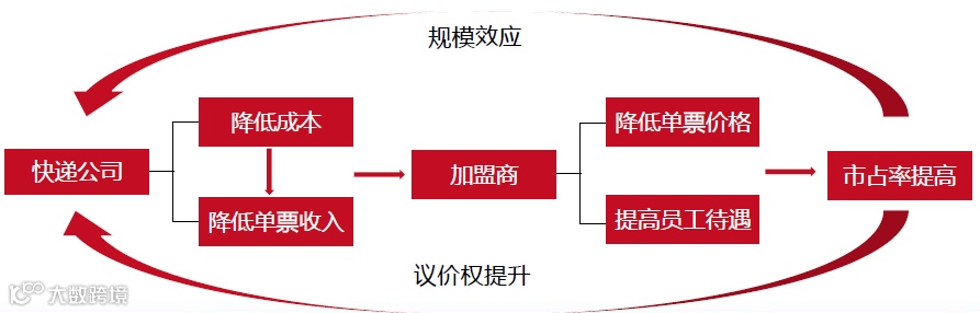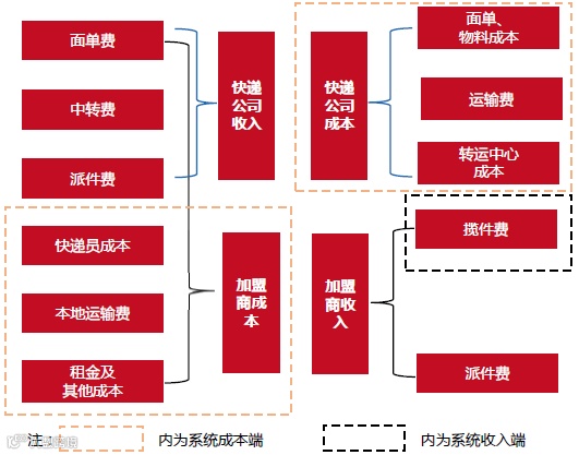 首先,通达系均属于加盟制快递企业,盈利模式相似,具体如下所示: