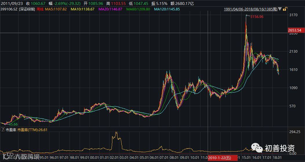 深证综指当前指数1467点,市盈率23.1倍,已经远低于2016年熔断的41.1倍(当时指数最低是1618点),2015年两轮股灾之后的最低点的38.8倍(当时的指数是1679点),现在的估值已经接近2012年底前阶段性底部的22.7倍,但当时的点位是725点。