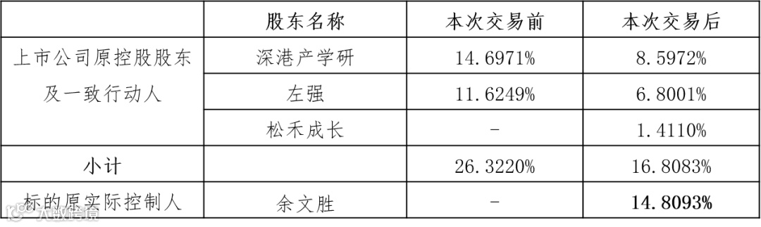 给一本正经的读者唠唠嗑。本次重组交易完成后,若深港产学研、左强、松禾成长(左强、厉伟、崔京涛)不构成一致行动人,那么控制权就是余文胜的了。同时,不管有没有一致行动人协议,余文胜是上市公司稳稳的第一大股东。这点很重要!