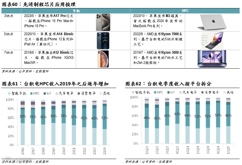 之前以智能手机为主导的先进制程需求正转化为手机和高性能计算需求竞争供给的格局。我们认为全球先进制程芯片或进入一个长于之前周期的上行周期,而作为全球高端智能手机芯片和人工智能加速芯片的主要甚至唯一供应商,台积电或进一步受益。我们认为,关税政策对于台积电影响有限,在先进制程供不应求的条件下,即便终端产品被加征关税,客户对先进制程的需求或不会改变。