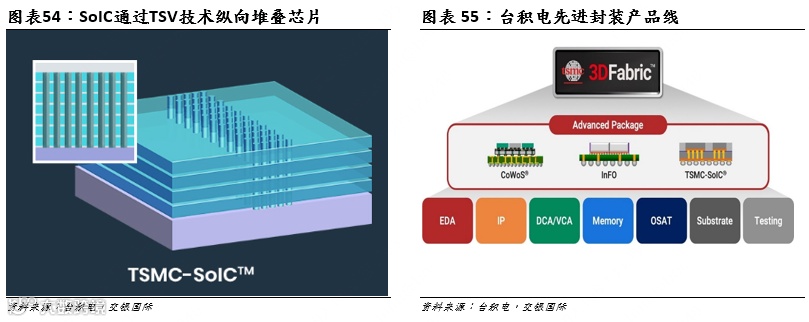 展望之后,根据管理层的介绍,台积电最新的3D封装技术(3DIC,技术专有名为 SoIC技术)研发已取得重要进展。与2.5D CoWoS技术使用中介层进行连接不同,3D封装通过使用TSV(Through-Silicon Via)技术,在硅片上制造垂直通孔,并在孔内填充导电材料,从而在垂直堆叠芯片的过程中实现芯片互联。相比CoWoS,3DIC这种可以直接垂直堆叠不同计算和存储芯片的技术路线或可进一步缩小芯片尺寸,比2.5D封装技术拥有更好的效率和更低的能耗。管理层表示3DIC或将随着2纳米(N2)和1.6纳米(A16)制程产能的爬坡(2H25之后)而获得更多客户订单。