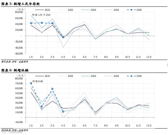 4月新增人民币存款减少4400亿元,同比少减3.48万亿元(2024年4月受规范资金空转和资金流向理财的影响,存款净减少3.9万亿元)。4月居民存款和企业存款同比分别少减4600亿元和5428亿元,非银机构存款同比少减1.9万亿元。