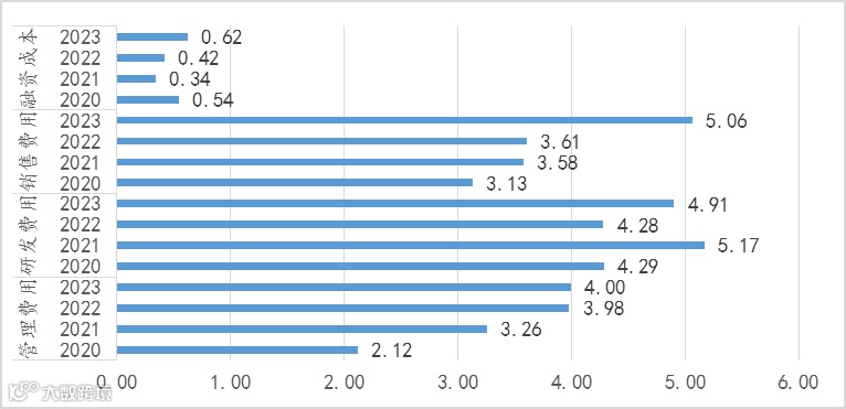 管理费用2023年4亿元,略高于2022年的3.98亿元,实现较有效地控制。