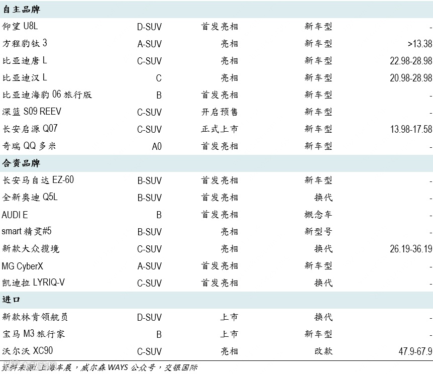本文节选自交银国际已发布研究报告《2025年上海车展前瞻:技术创新推动智能化提速,大型SUV成新战场》(2025/04/22)。