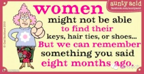 “女人的确会忘记她们的钥匙,发夹,鞋子放在哪里,但是她们却能记得你八个月前讲过的话。”