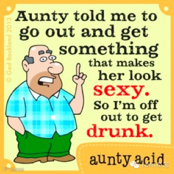 “尖酸姑妈让我出门找样东西能使她看起来性感,于是我出门把自己灌醉。”