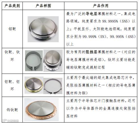 表:江丰电子主要产品