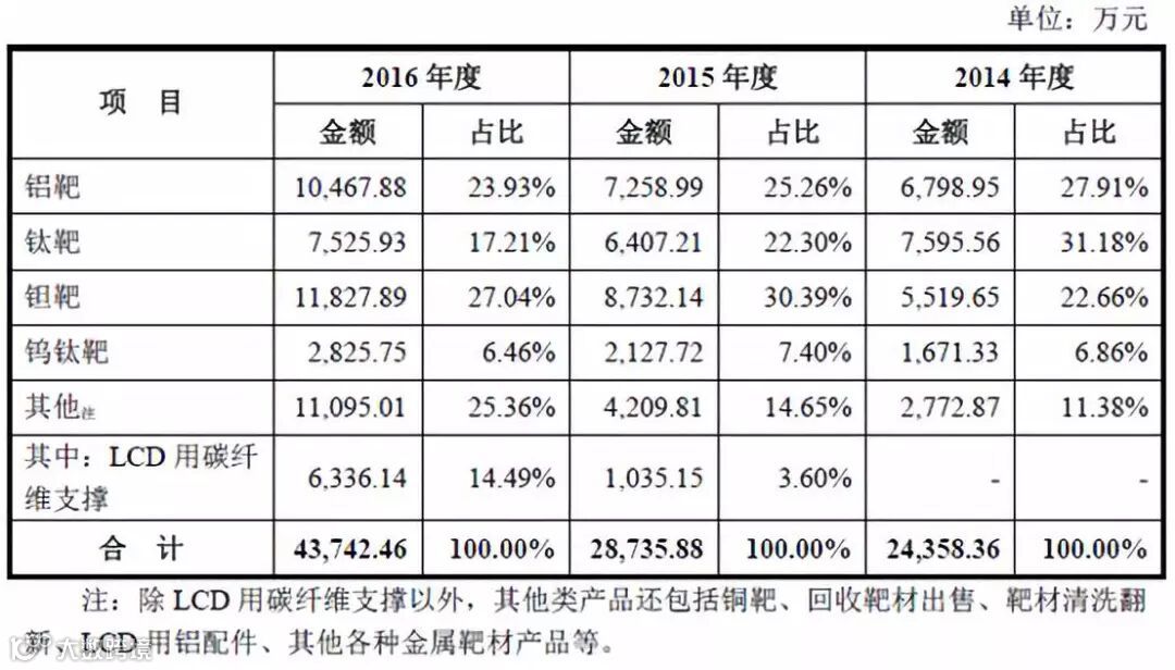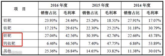 根据上表可知,江丰电子在“钽靶”方面,主要是销售钽环的,而钽环的毛利率较高,2015年和2016年,钽环的毛利率分别达56.88%和62.53%。