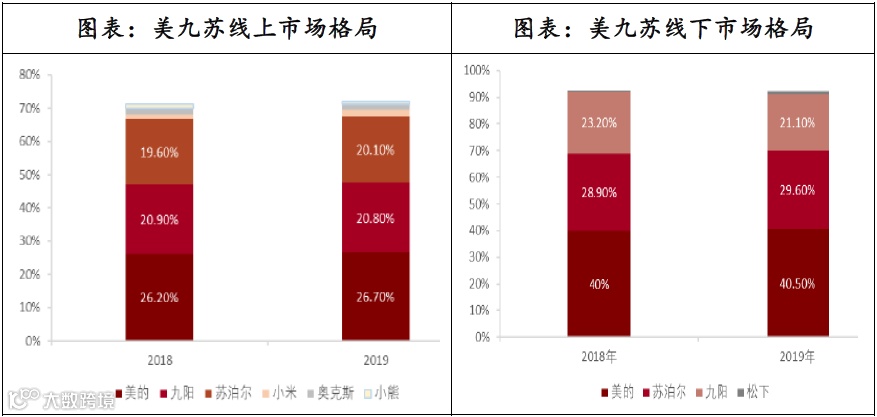 小家电行业尤其是小家电的传统品类,竞争格局比较稳定。无论是线上还是线下,美九苏都呈“三足鼎立”之势。