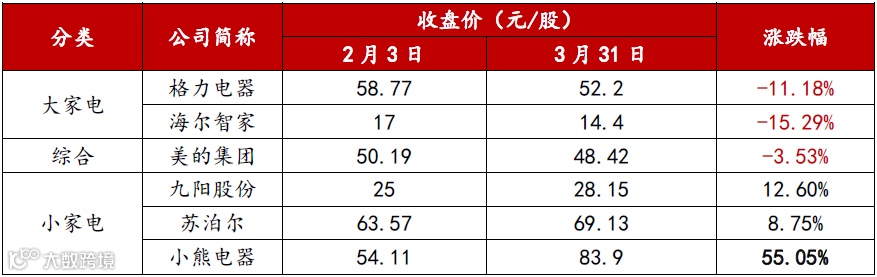 此外,小家电受房地产景气度影响极低。鉴于此,小家电备受资本市场期待,有望延续其“黄金时代”。以我国A股市场,春节后的家电公司股价走势来看,亦可见一斑,具体如下: