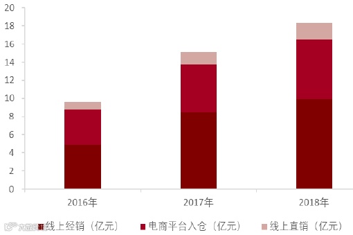 公司产品核心竞争力之一为“高性价比”,在线下渠道推广给予经销商的利润空间有限,因此线下渠道布局处于劣势。但是,小家电产品体积更小,无需安装,使用便利,因此公司在进行渠道选择的时候,就选择了线上为主线下为辅的布局。2018年,小熊线上销售额为18.3亿元,占总销售额的90.4%。