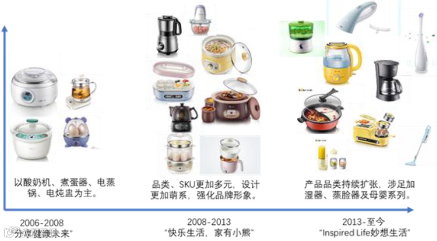 细分品类,横向拓展创意小家电。公司以客户为核心,另辟蹊径创造了早餐小家电这样的全新品类,例如酸奶机、煮蛋器以及早餐一体机这样的产品,再拓展至母婴护理、西式烘焙、家居个护等产品线。