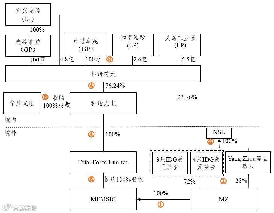 ①7只IDG美元基金和YangZhou等自然人设立MZ,MZ取得MEMSIC100%股权。