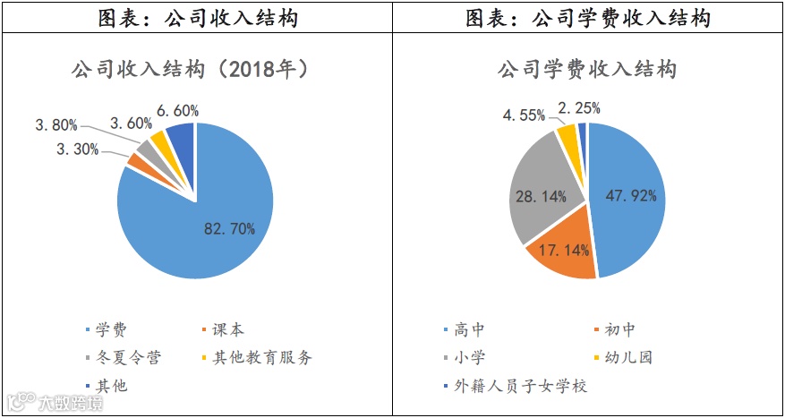 从公司旗下各类学校的收入来看,高中部的收入是公司营收的重要部分,占公司收入总额的39.6%,占学费收入的47.92%。