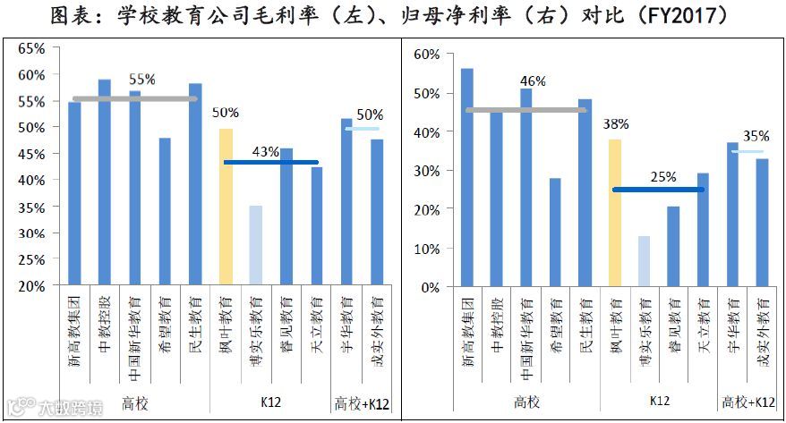 在此,小编觉得有必要通俗的翻译一下,干民办学校的护城河在于“品牌”,“品牌”背后的核心驱动力是升学率或就业率。在我国特有的教育环境、就业环境下,“升学率”,尤其是“名校升学率”可谓是硬性指标,而“就业率”这个指标,似乎有笔糊涂账。这就意味了K12的管理要求是显著高于高校的管理要求的。