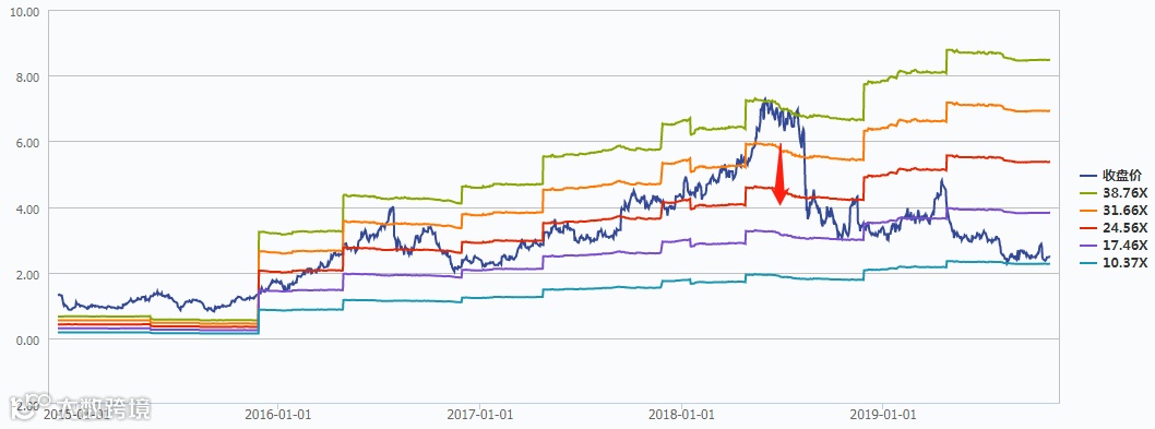 截至2019年10月30日,公司股价处于上市以来的最低谷,位于PE-10.37X趋势线附近。追溯其历史股价走势变化,公司股价走出“过山车”曲线:自公司上市以来,公司首发价格为2.88港元/股,涨至最高价7.413港元/股(前复权),后跌至2.470港元/股(截至2019.10.30)。主要原因可以概括为“政策冲击”---《送审稿》(2018.8.10)。
