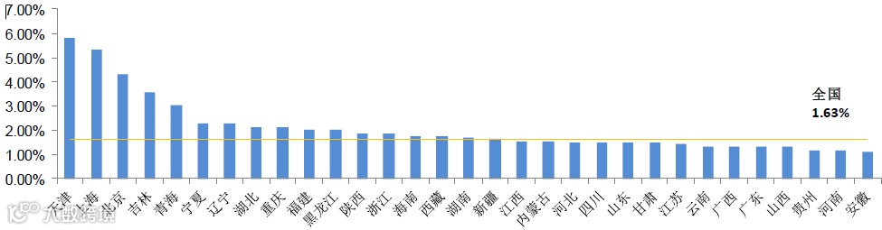 图表:2017年全国各省市985录取率