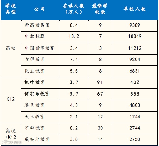(2)增长角度:K12学校可以通过自建或轻资产模式实现快速扩张,因此在学校数量上有显著优势。