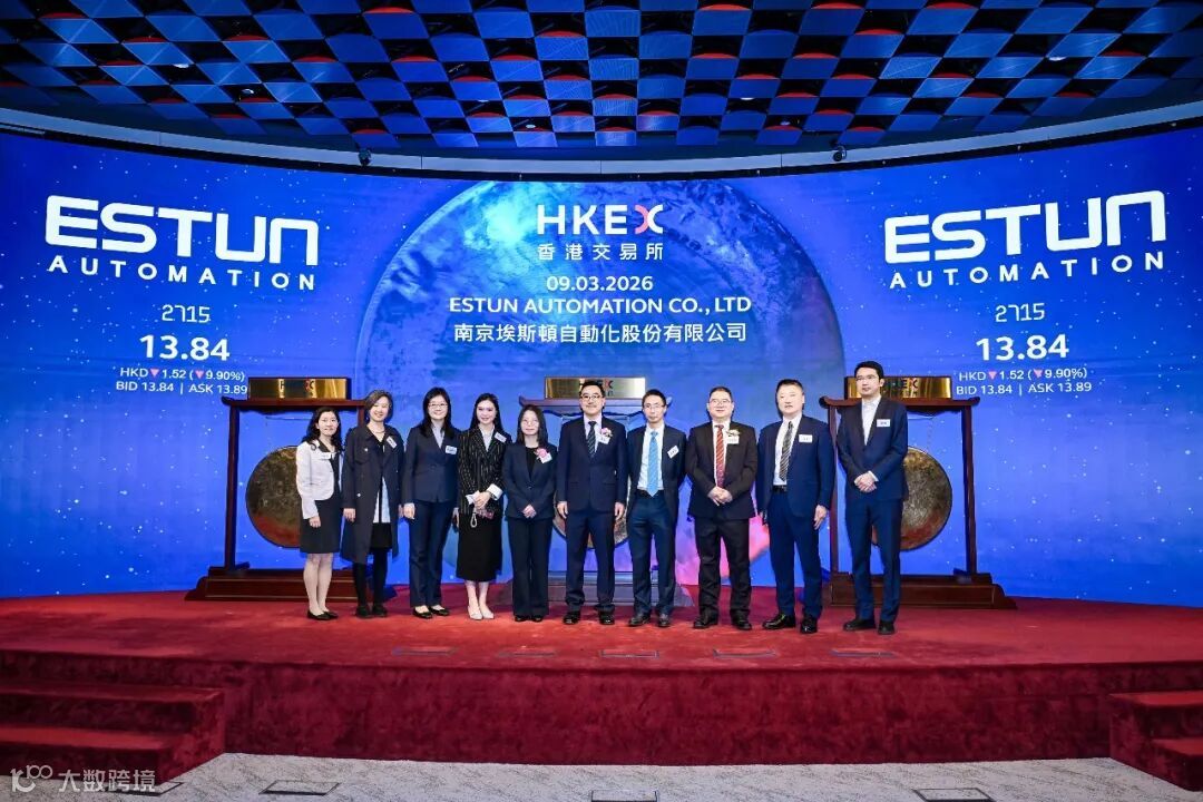 3月9日,被誉为国产工业机器人“四小龙”之一的南京埃斯顿自动化股份有限公司(“埃斯顿”,2715.HK)正式在香港联合交易所主板挂牌,成为中国工业机器人领域首家“A+H”上市公司。本次IPO基础发行规模约14.87亿港币,若15%的超额配售权悉数行使,绿鞋后发行规模将达约17.10亿港元,获得嘉实基金、亨通光电、海天国际等七家基石投资者联手捧场。交银国际在本次项目中担任联席全球协调人、联席账簿管理人及联席牵头经办人,这也是交银国际2026年完成的第五单港股IPO项目,持续彰显在港股IPO领域的专业执行能力与项目运作实力。
