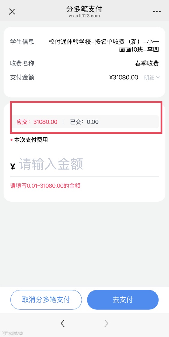 家长同样能清晰了解个人缴费进度,消除信息不对称。