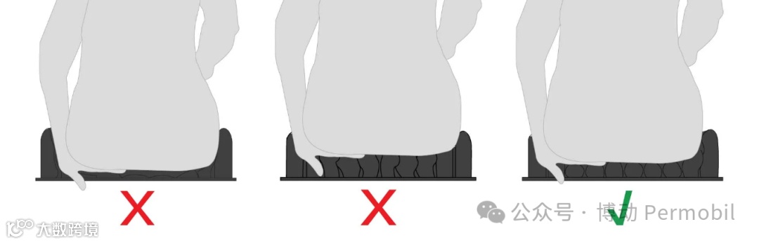 选择座垫时,可以观察其材质是否会“压缩”:坐下时,介质本身是否变形? 泡棉、大部分凝胶和填充式气囊通过压缩来达到适形效果。