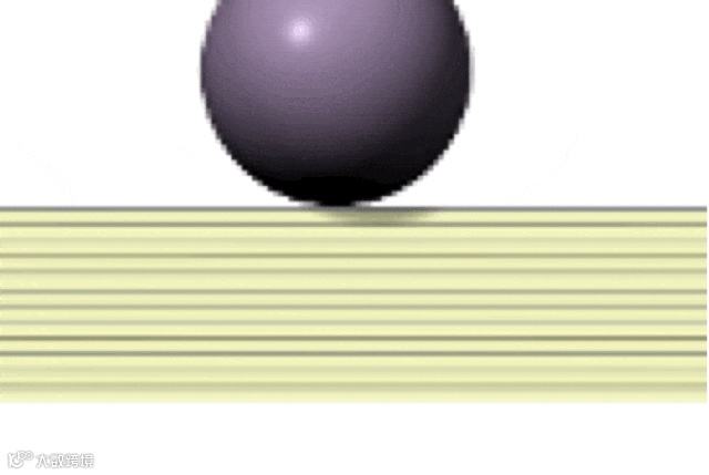 上图展示了未施加重量时的表面,及加重后的状态。 可以看到,材料在物体周围被压缩后,出现一种反向的力量,这源于牛顿第三运动定律:「每一个作用力都有一个相等且相反方向的反作用力」。