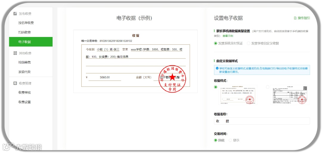机构收费范围覆盖全国各地,机构自行设置符合自身的电子收据样式后,学员缴费后该电子收据就会自动下发;学员也可自行在公众号获取,解决了异地学员此前获取收据的难题,也大大缩短了获取时间,同时还减轻机构财务的工作量。