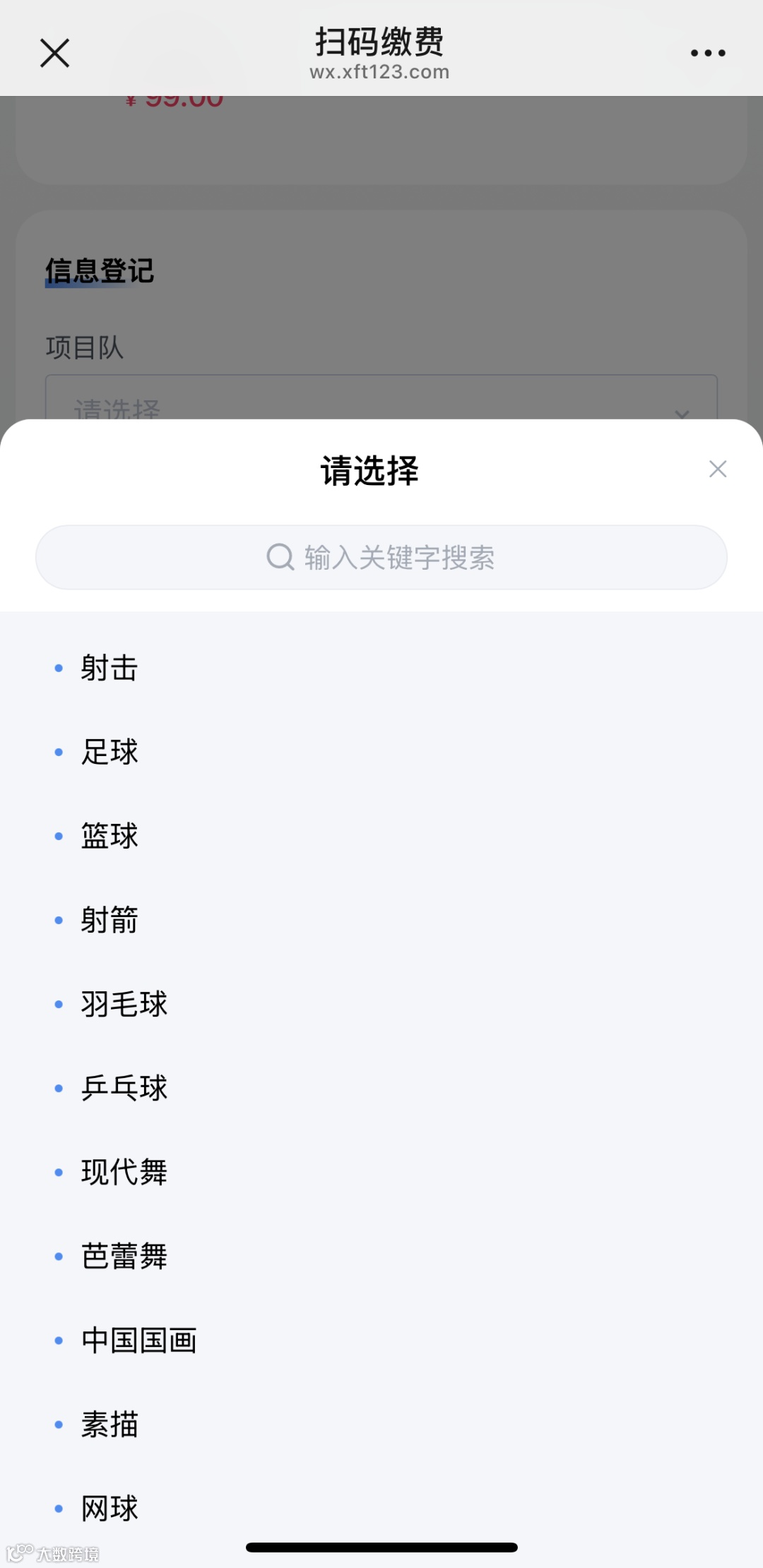 家长在扫码缴费时,可通过输入关键字快速定位目标选项,可解决历史登记项众多造成搜索耗时难题,提升家长在缴费环节的便捷性与流畅度。