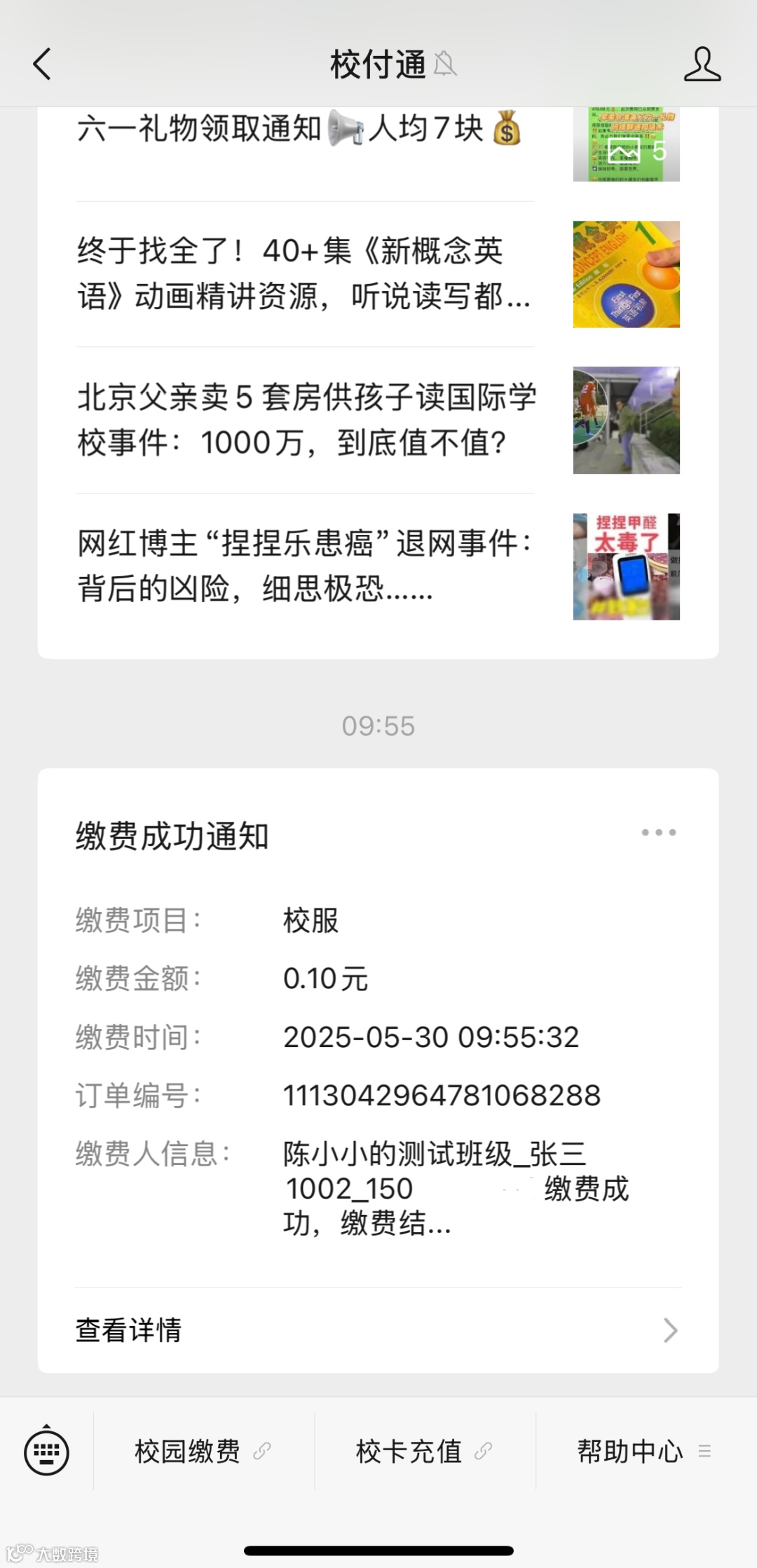 家长在校园寄售完成商品支付后,系统将同步推送缴费成功通知,学校管理人员可即时掌握商品出售进度,快速响应订单处理,有效提升校园寄售的运营效率与服务体验。