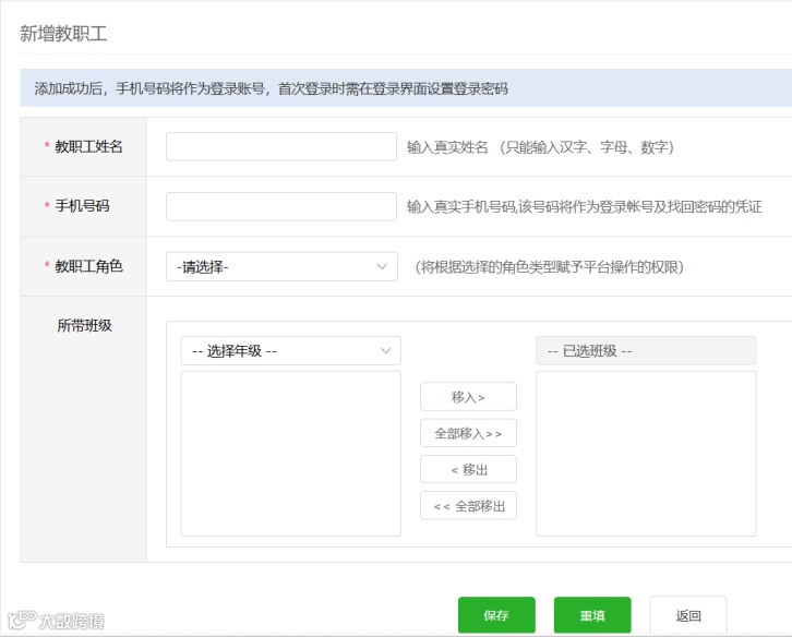 简化账号创建流程,取消新建教职工账号时初始密码设置步骤。此次优化在保障平台使用安全性的同时,缩短了新增账号耗时。尤其是在批量新增教师管理账号时,提供了极简高效的操作体验。