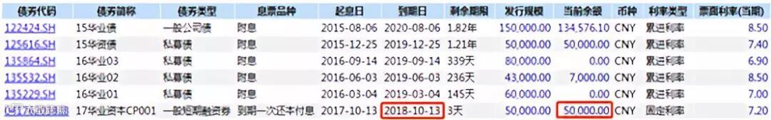 截至2018年10月10日,华业资本发行的债券明细如下: