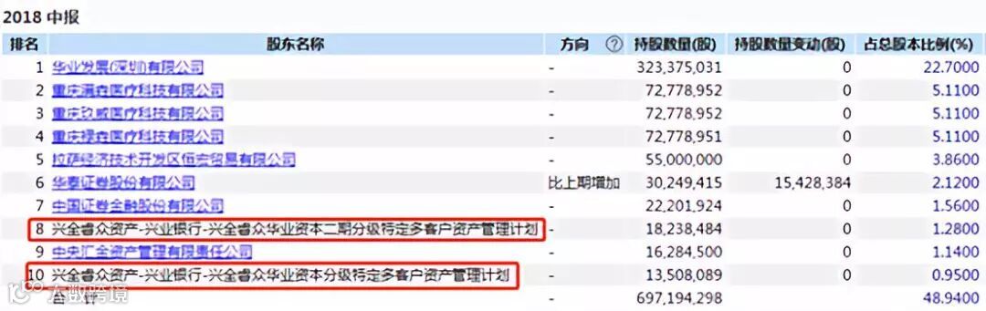 按照约定,这两个员工持股计划的股票锁定期为12个月,但截至今年二季度末,两个基金专户并未进行任何减持,目前两个基金专户为华业资本前十大股东,具体情况如下:
