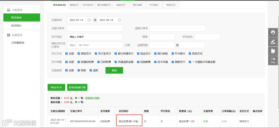 ⚠️已结算查询明细会显示拆笔支付未完成退款的记录