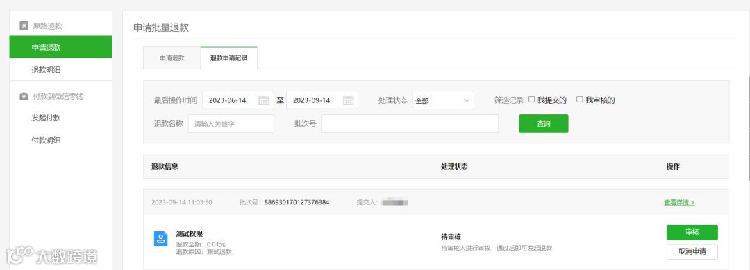 审核人需在【退款管理】-【申请退款】-【退款申请记录】进行审核