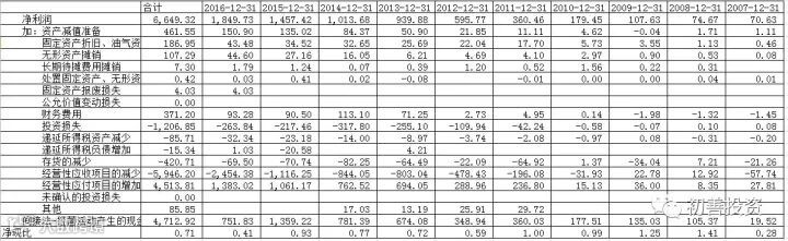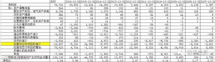 调整最主要的是两类内容,一是影响净利润但不影响现金流的,即利润表项目中的折旧摊销、财务费用(不是经营活动导致的)等等;二是主要影响现金流但是影响净利润较小的资产负债表科目因素,比如存货的变动、应收账款和应付账款的变动。