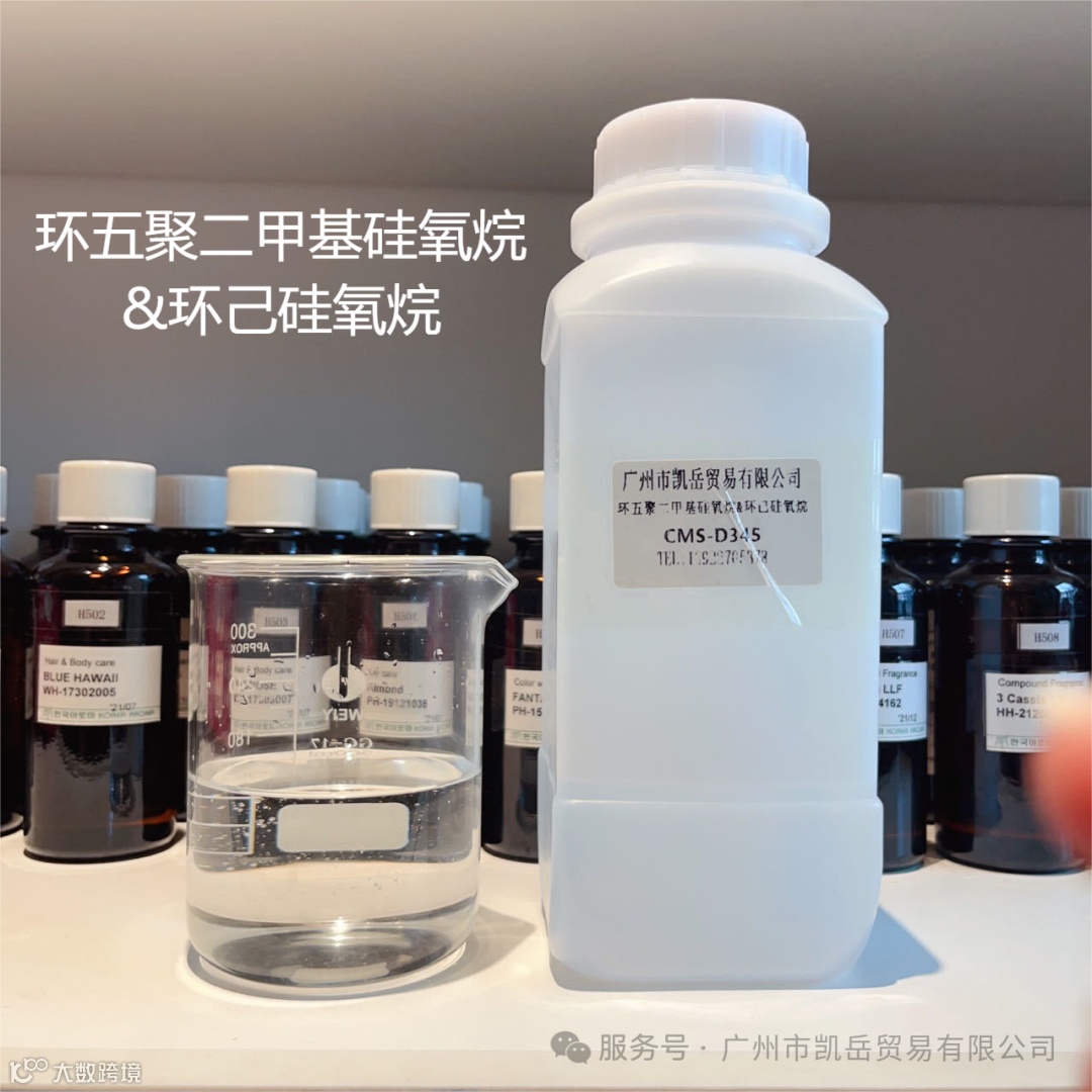 CMS-D345 Fluid环硅氧烷混合物是一种挥发性聚二甲基环硅氧烷的混合物,主要由环己硅氧烷和环戊硅氧烷构成。该产品清亮、无味、无嗅、无油腻且无刺痛。是人体护理产品中的基油,具有良好的铺展性、易于擦除性、润滑性质,以及独特的挥发特性。