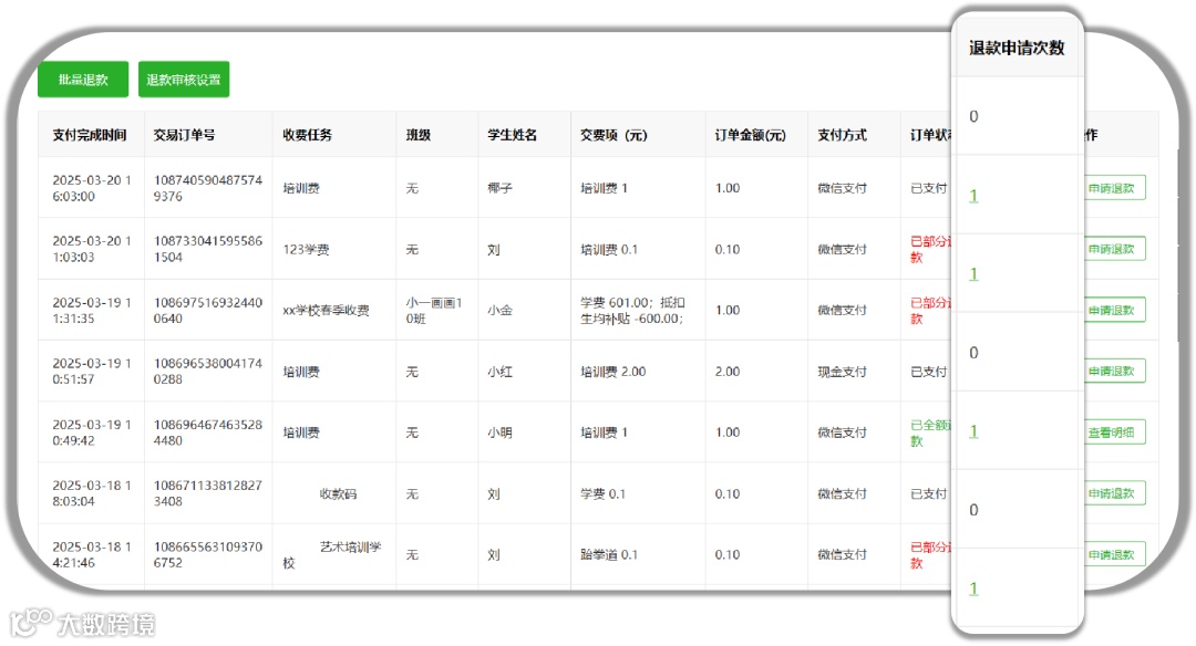 退款次数、可退金额、退款操作等关键信息实时更新,无需人工标记,确保了退款的准确性和灵活性。