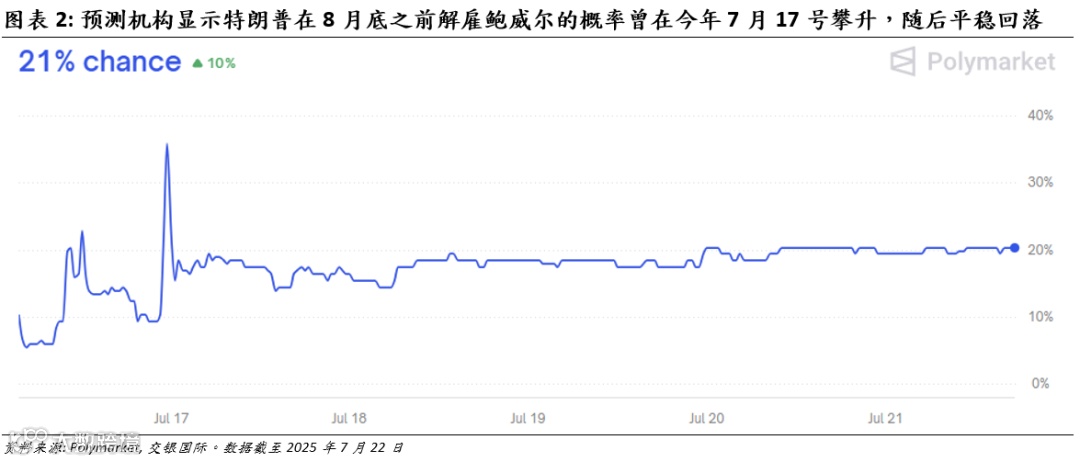 7月16日,据《纽约时报》披露:特朗普在白宫向共和党议员展示解雇鲍威尔的草稿信件,试探政治支持度。然而,面对市场的剧烈反应,特朗普迅速调整表态,在随后的新闻发布会上将解雇可能性描述为“极不可能”,并声称“没有具体计划”。