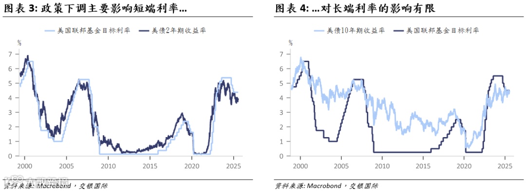 特朗普政府希望通过向美联储施压,促使其大幅降息,以降低长期利率,减轻政府债务负担,反映其对货币政策传导机制的存在不同解读,尽管背后的实质动机或由政治等各种因素驱动。然而,我们认为,无论其动机如何,该解读与货币政策传导机制的内在逻辑存在偏差。美联储政策利率主要影响短端收益率曲线,而长期国债收益率在很大程度上反映市场(假设其具备一定理性)对未来通胀预期、经济增长前景及财政可持续性的综合判断。即使特朗普成功迫使美联储大幅降息,如果市场认为这种政策干预会引发未来通胀风险或严重损害美联储独立性,长期利率可能不降反升。