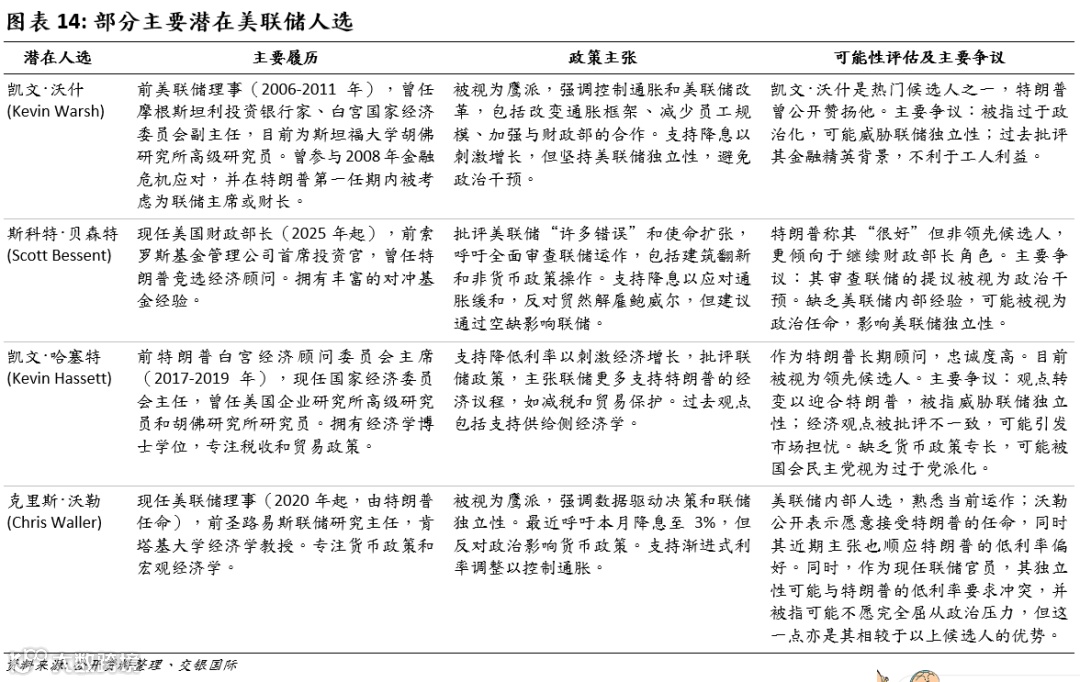 面对特朗普政府的持续批评和解雇威胁,FOMC成员更加意识到维护央行独立性的重要性。鲍威尔任期至2026年5月,其公开表态不会辞职并否认特朗普有权因政策分歧解雇他,在应对政治压力时展现出的坚定立场,也赢得了委员会成员的尊重和支持。因此,无论是计划将鲍威尔降职,还是提前通过影子美联储来进行政策施压,考虑到鲍威尔的影响力,以上措施可能在实操层面皆难奏效。